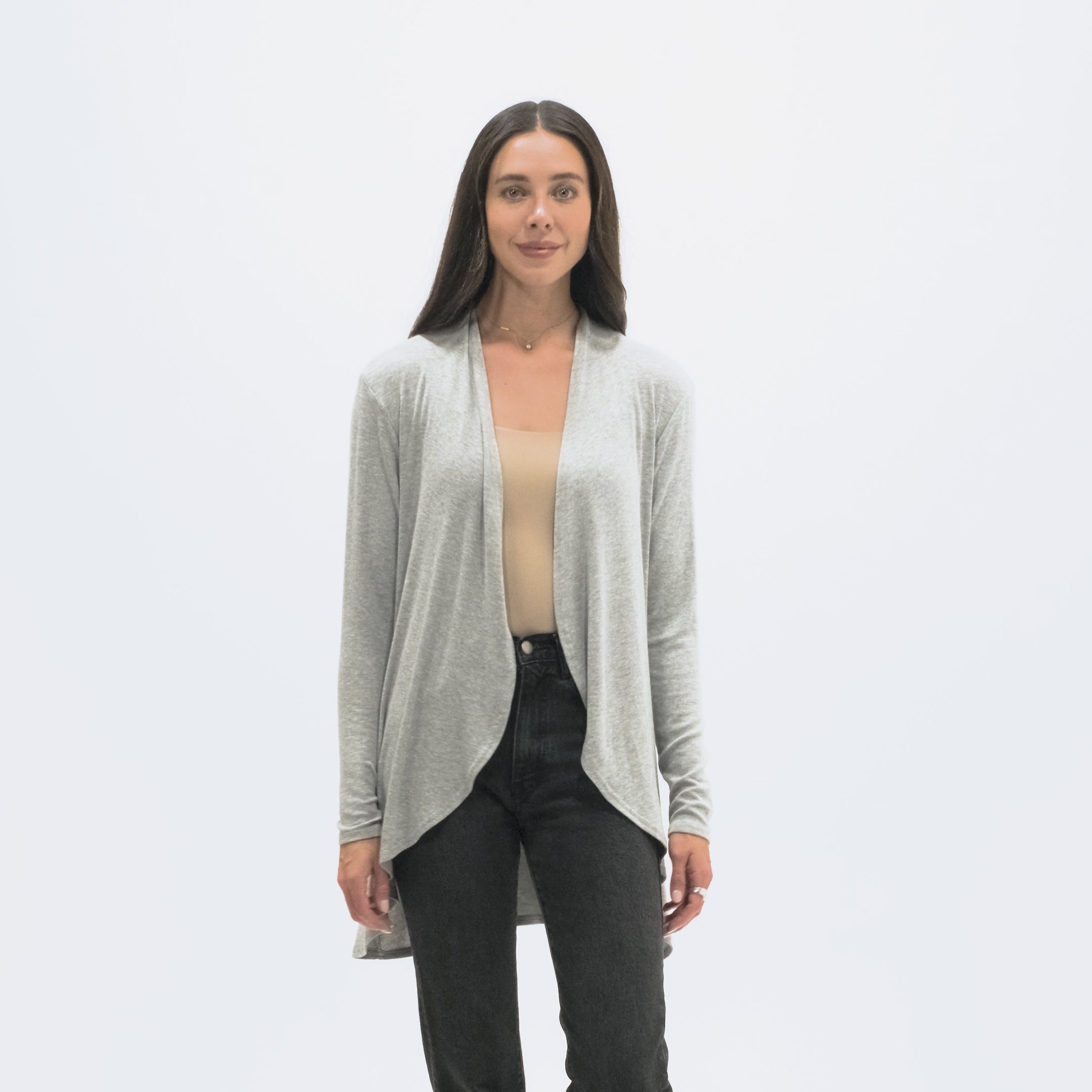 Hampton Open Front Travel Cardigan with Pockets in Eco-Cashmere Heather Gray